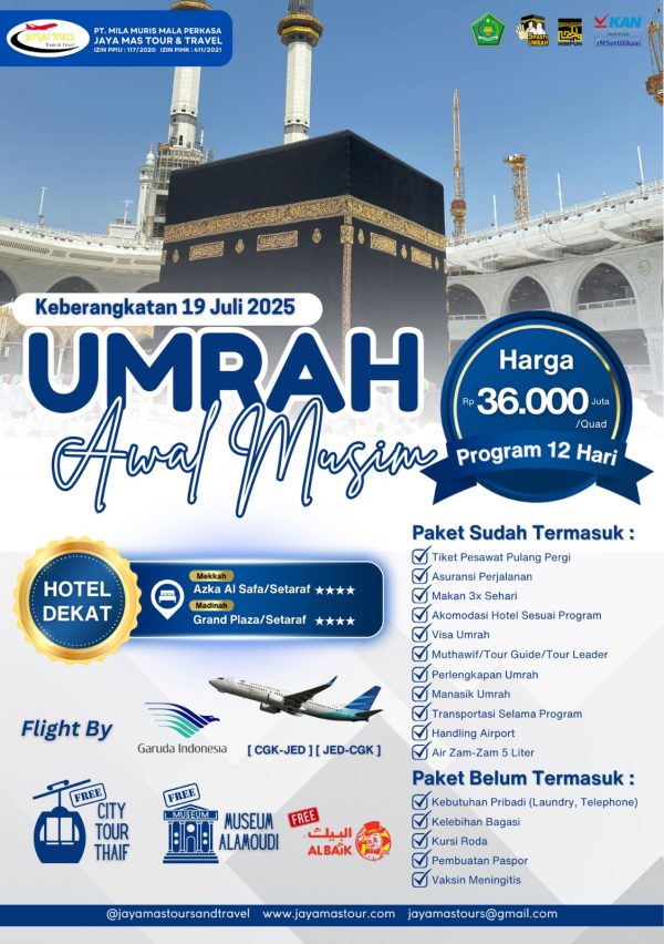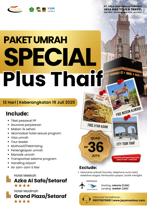 UMRAH PLUS THAIF 19 JULI 2025 (12 HARI) BY GARUDA INDONESIA